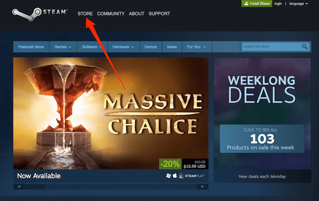 • Ouvrez Steam> cliquez sur l’onglet Stocker.